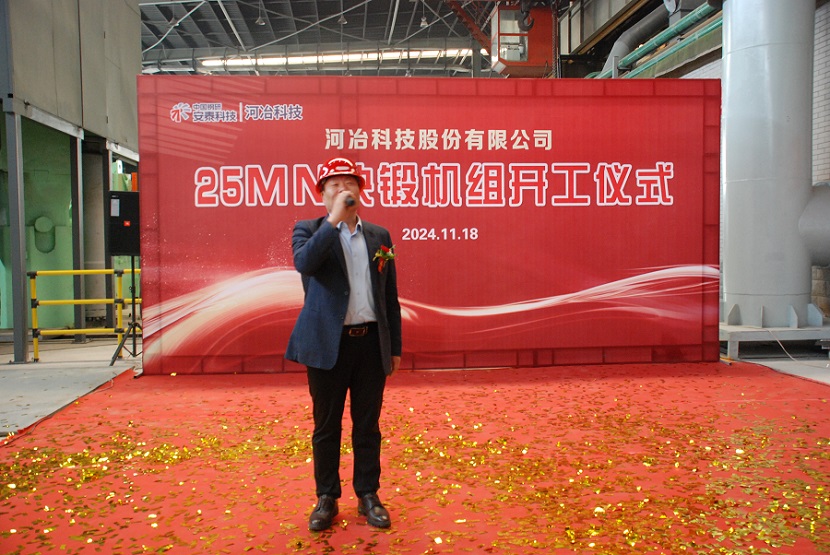 20241118日,暖陽揮灑,天朗氣清。河冶科技在25MN快鍛開坯產線建設項目現場隆重舉行了該機組開工儀式!