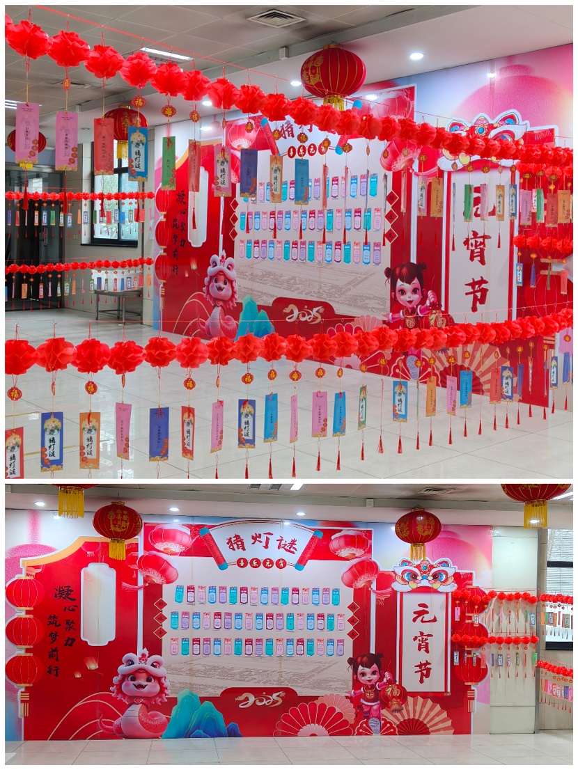 活動當天,生活區(qū)食堂就餐大廳被裝點得煥然一新。頂棚高懸著大紅燈籠,大廳的柱子掛滿了彩色燈謎紙條,洋溢著濃厚的節(jié)日氛圍。員工們一踏入食堂,就被這喜慶的場景所感染,迫不及待地投入到活動中。