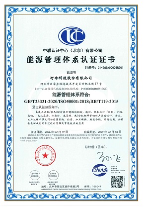 2020年2月,公司依據GB/T23331-2012/ISO50001:2011標準,建立了能源管理體系,通過了中聯認證中心(北京)有限公司認證;